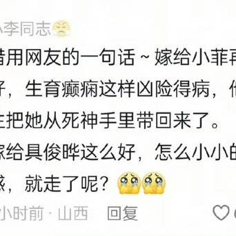 很多女拳在留言说汪小菲演戏,这女拳是脑子有病;情绪化的汪小菲才是真实的汪小菲,他从来不是个理性的人,所以才不停被大家笑话。但是正常人都可以看出,其实他不愿意离婚,他是爱大S的。大S去世,汪小菲肯定伤心的,对她个人、而且还是孩子妈妈。